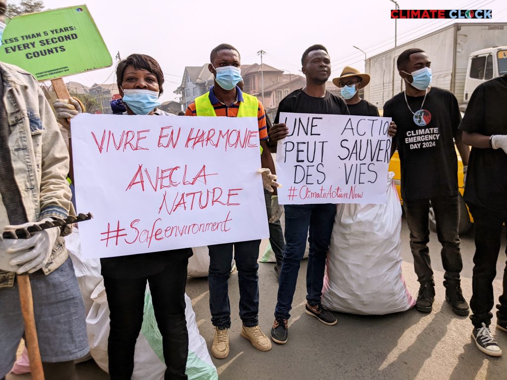 Avec les supports de communication à la main, les jeunes activistes de Climate Clock DRC veulent voir tout le monde s’approprier le développement durable de la région. Et c’est en mettant un accent sur l’environnement sain car notre santé en dépend.