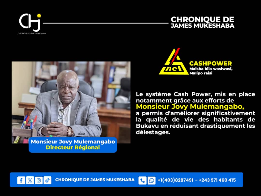 L’adoption du système Cash Power à Bukavu par la SNEL sous la direction du DG Jovi MULEMANGABO montre la bonne voie dans la gestion de l’électricité dans la ville. Un bon système, qui est en train de changer la vie quotidienne des habitants.