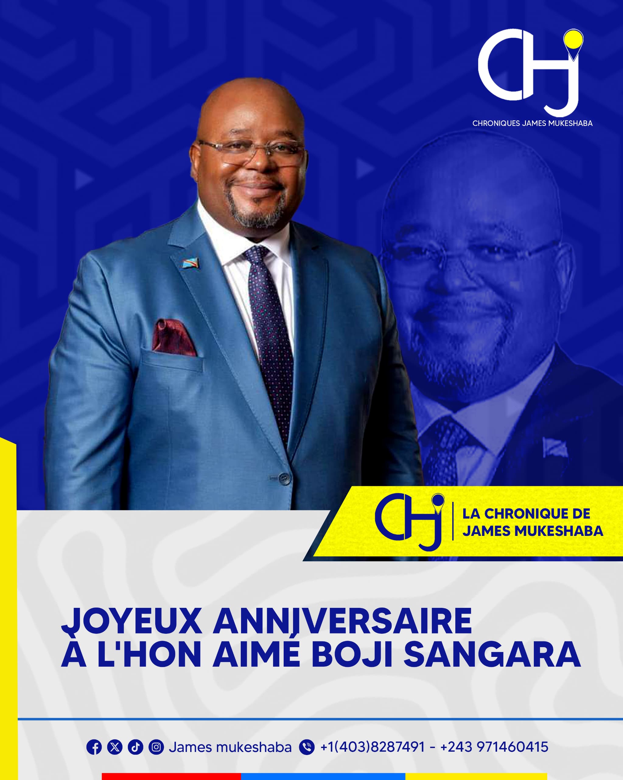 La Chronique de James Mukeshaba se joint à de nombreuses voix de compatriotes pour souhaiter un joyeux anniversaire à Son Excellence Aimé Boji Sangara, Ministre du Budget.