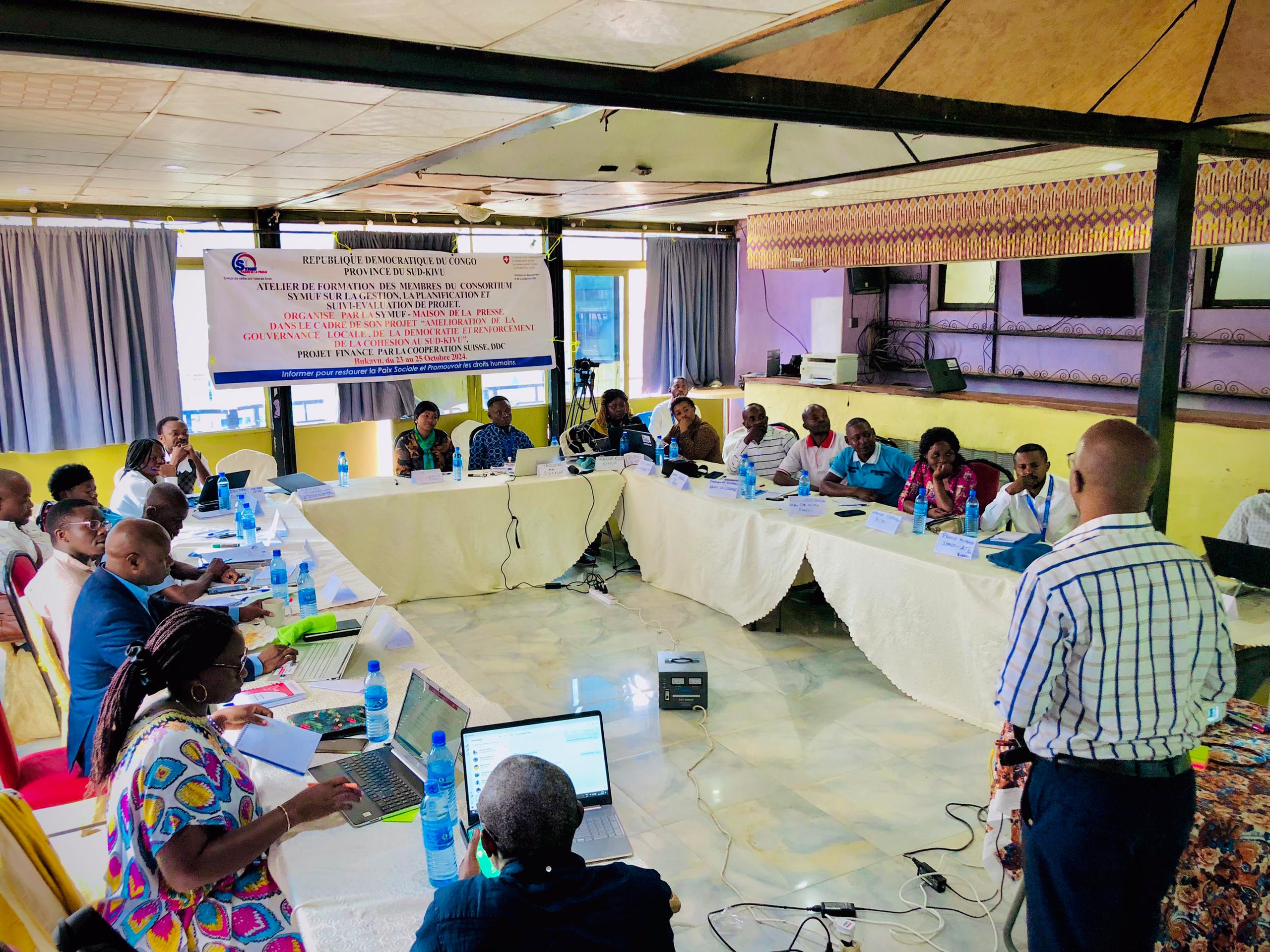 Dans le cadre de son projet « Amélioration de la gouvernance locale, de la démocratie et renforcement de la cohésion au sud-kivu », la synergie des medias pour l’union de force, SYMUF en sigle, perfectionne les membres du consortium sur la gestion, la planification et suivi-évaluation du projet à la salle witness à bukavu.